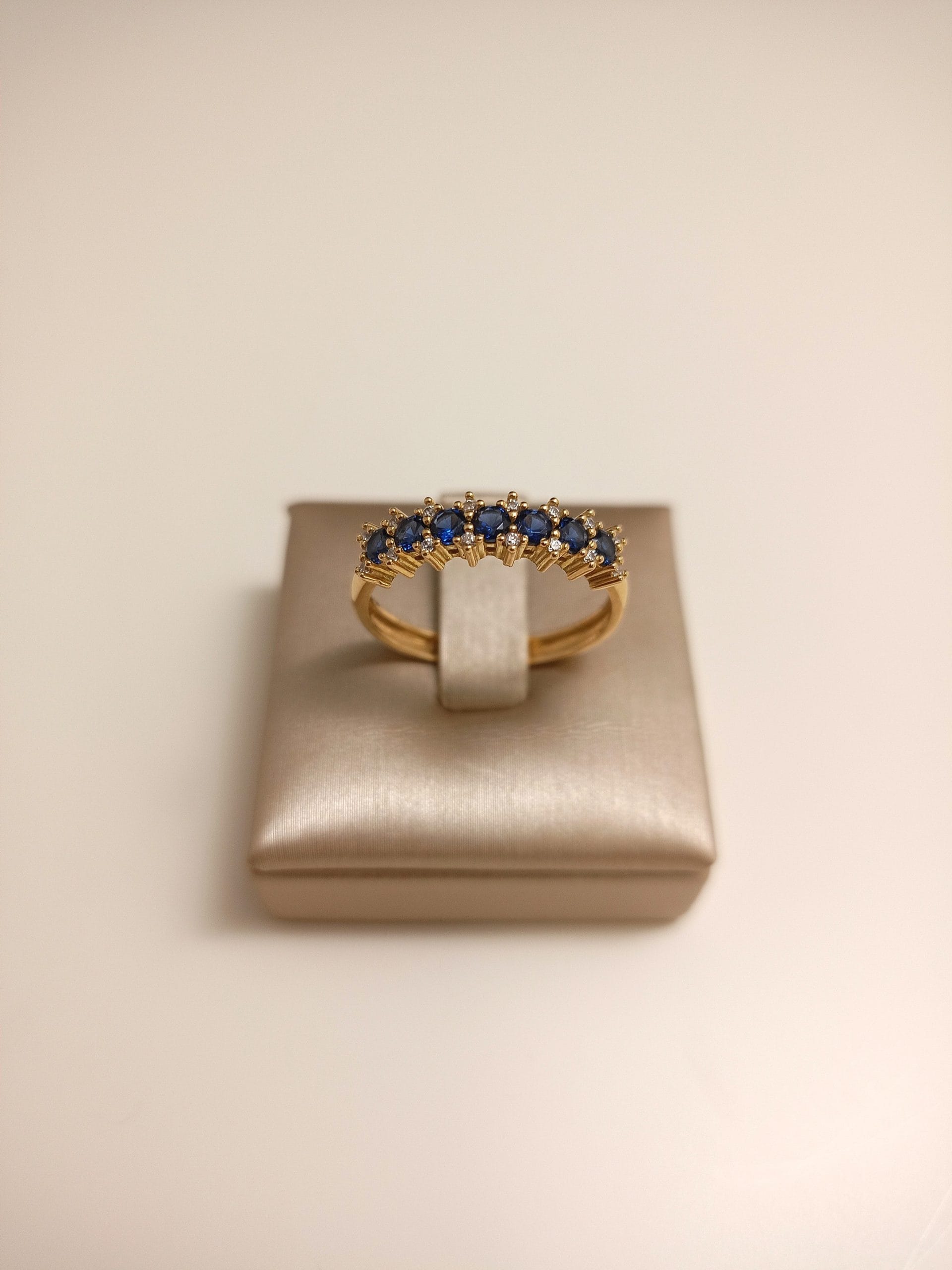 Anello Da Donna In Oro Giallo 18Kt con zirconi incastonati su gambo pieno. Peso dell’anello gr 2.40