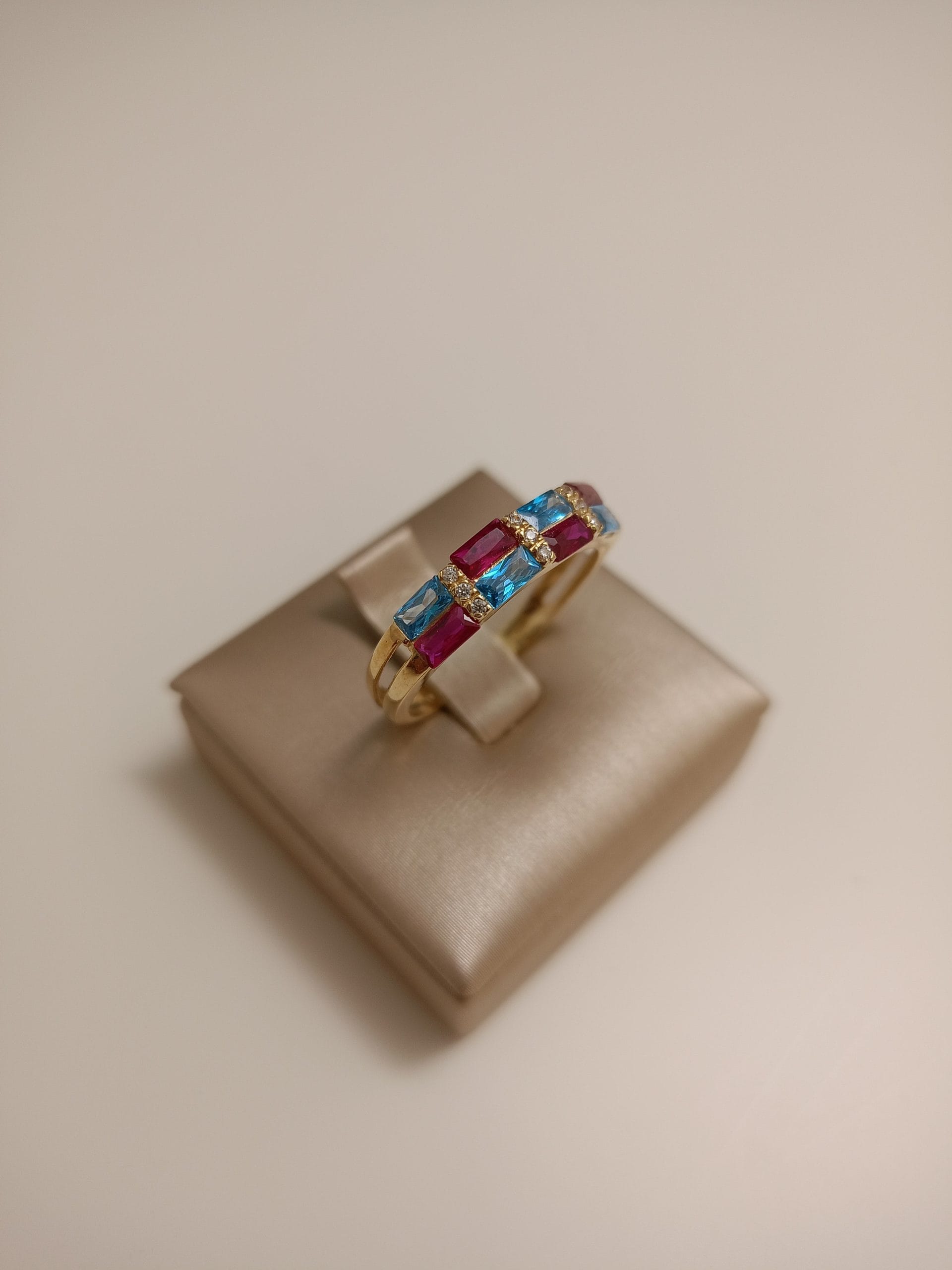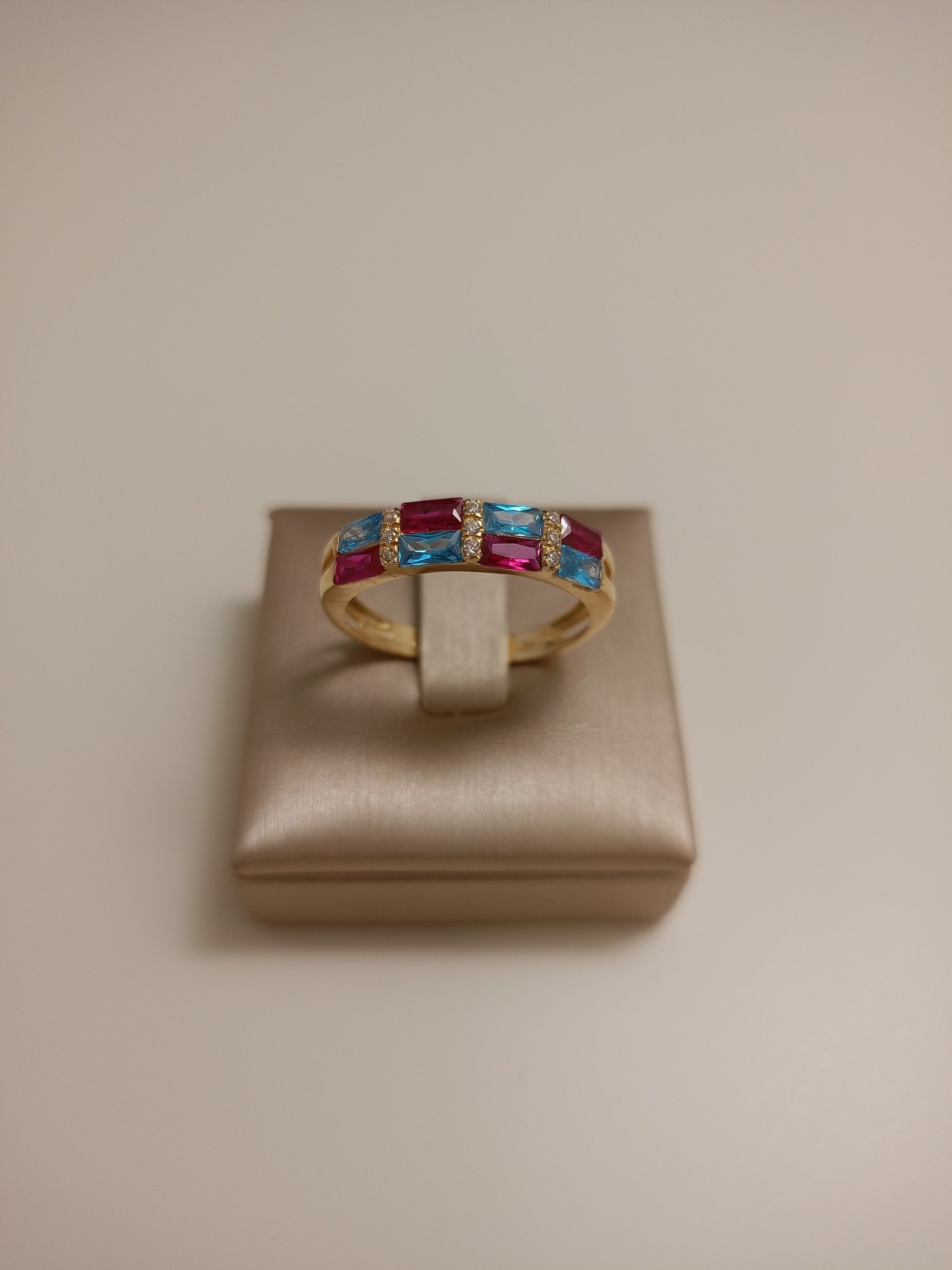 Anello Da Donna In Oro Giallo 18Kt con zirconi incastonati su gambo pieno. Peso dell’anello gr 2.5