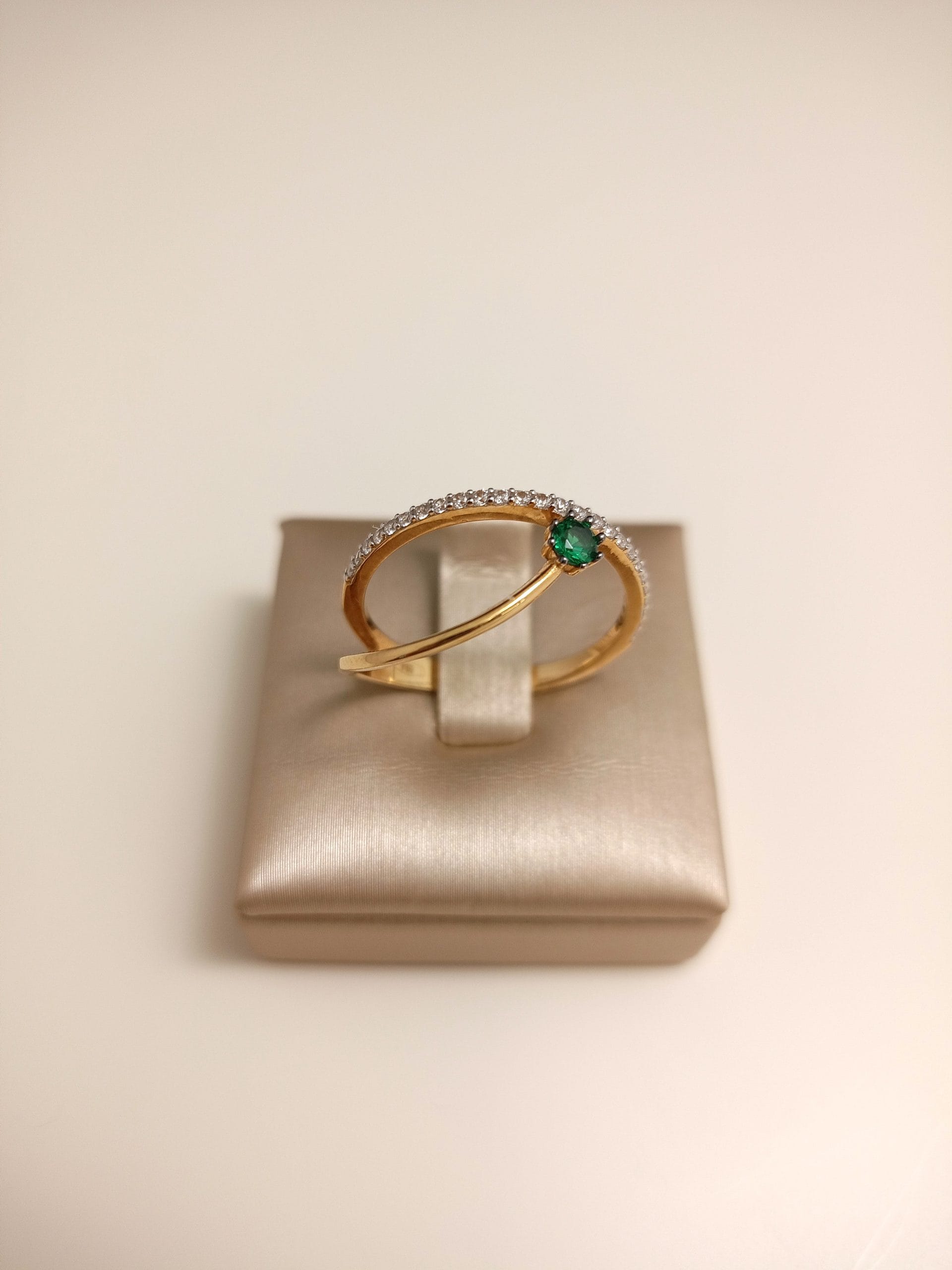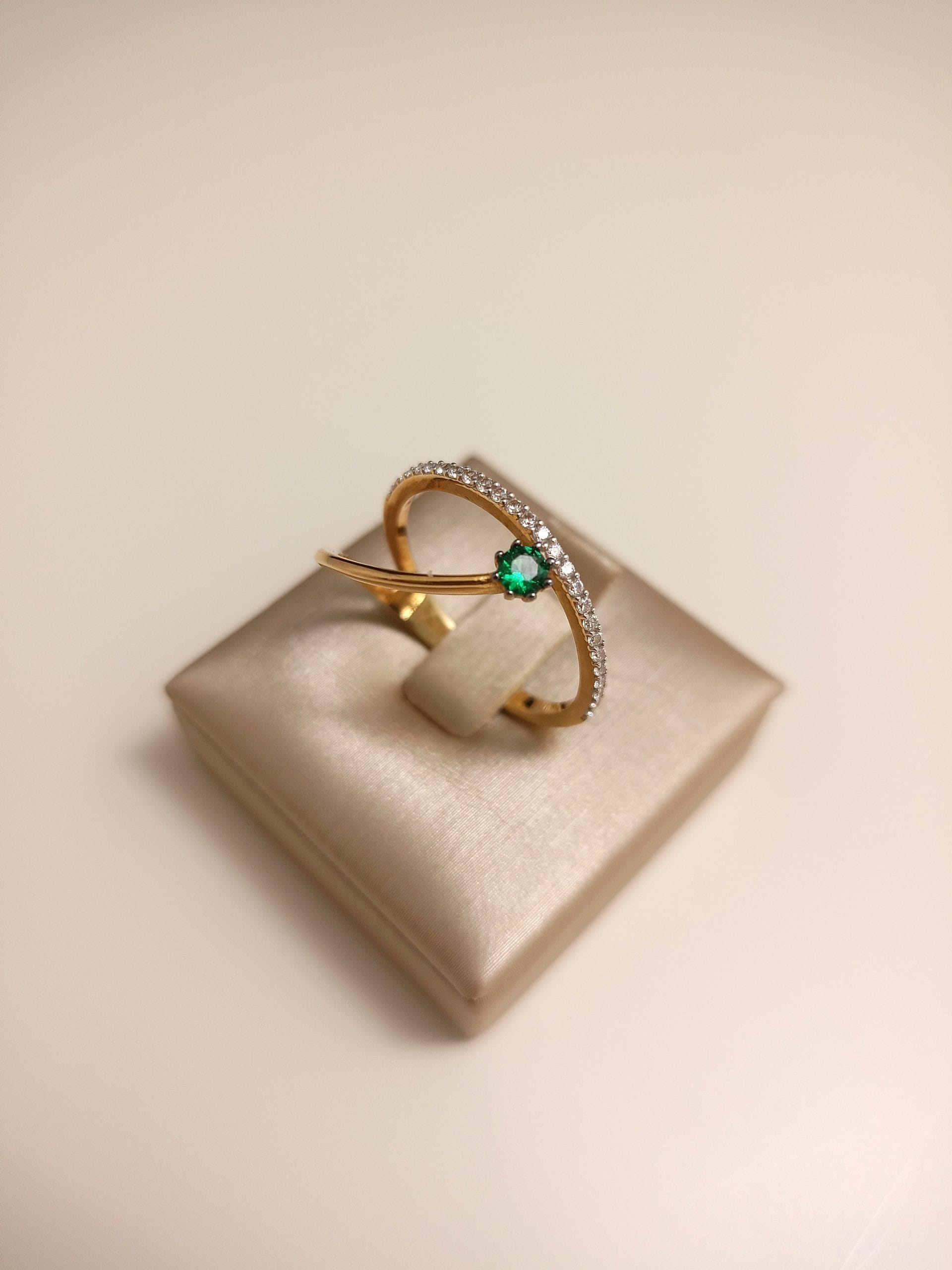 Anello Da Donna In Oro Giallo 18Kt con zirconi incastonati su gambo pieno. Peso dell’anello gr 2.40