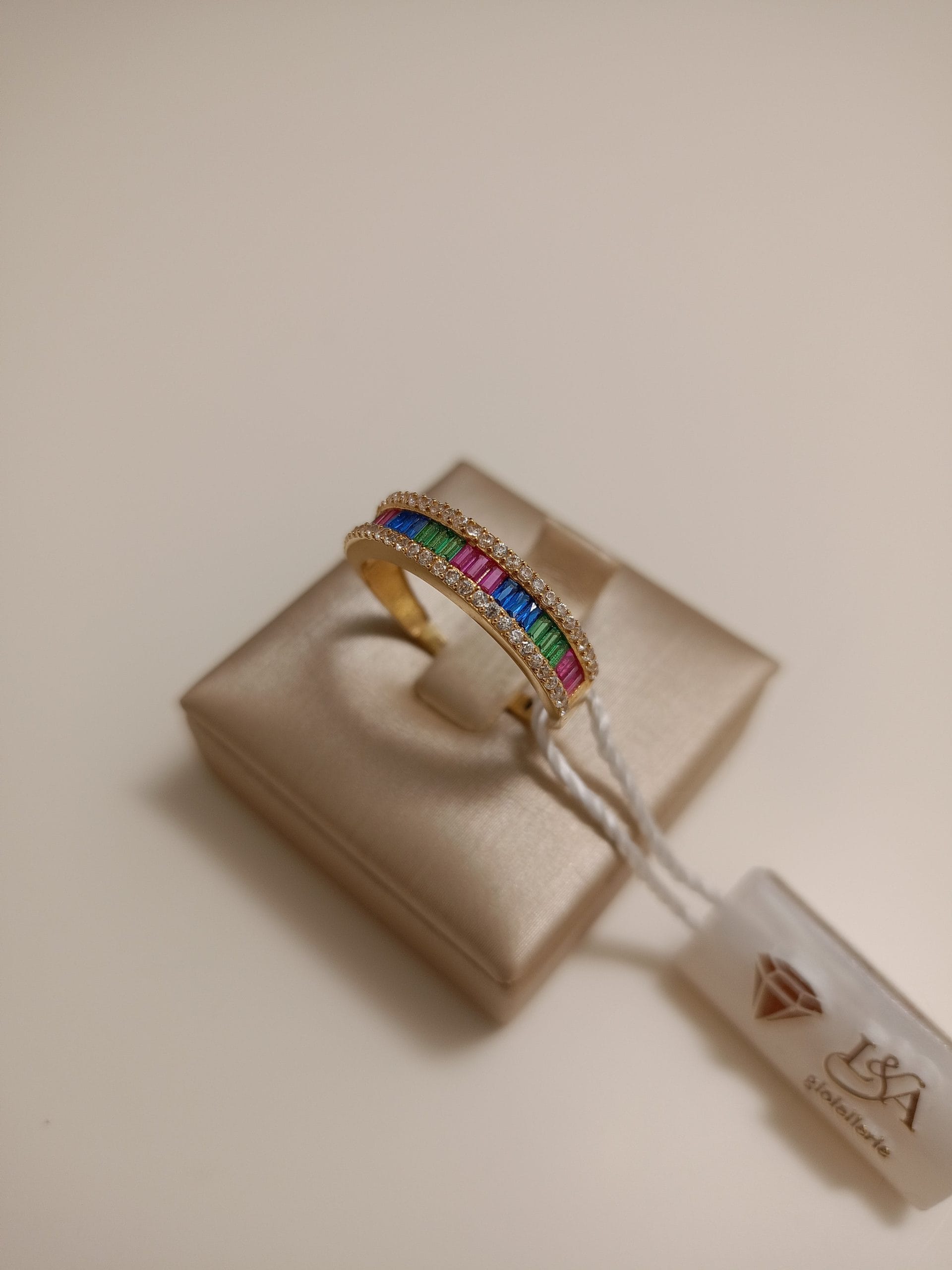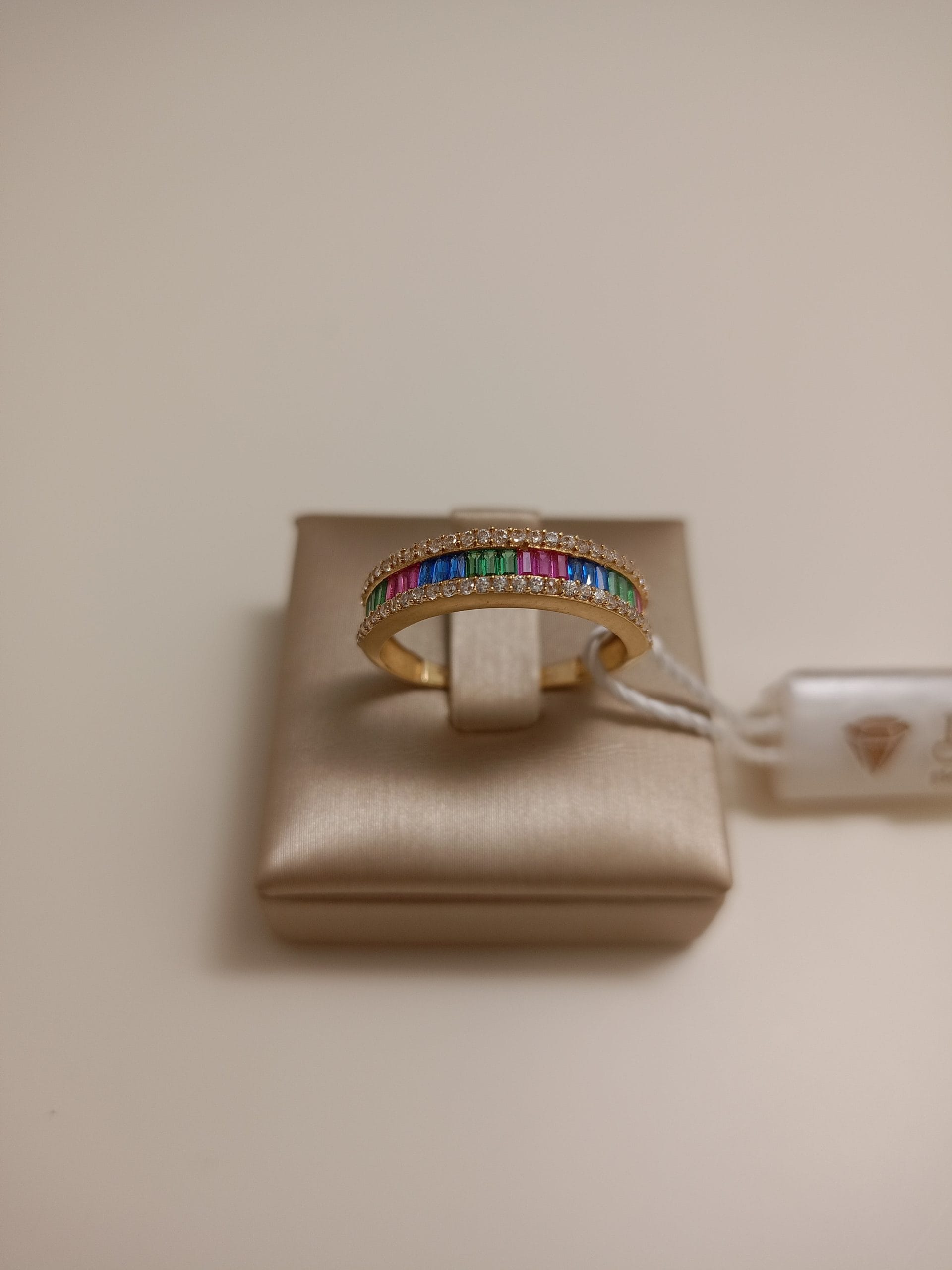 Anello Da Donna In Oro Giallo 18Kt con zirconi incastonati su gambo pieno