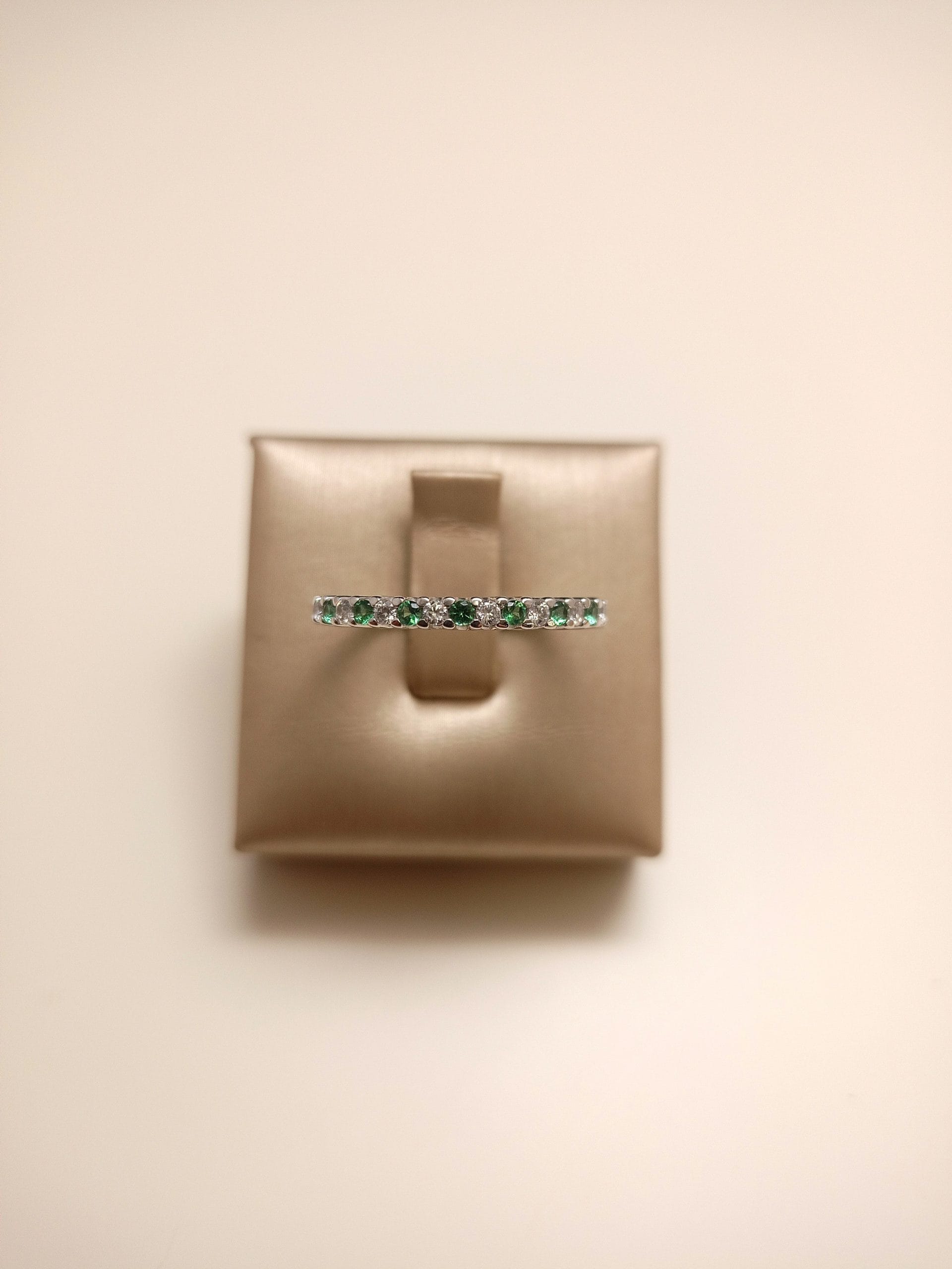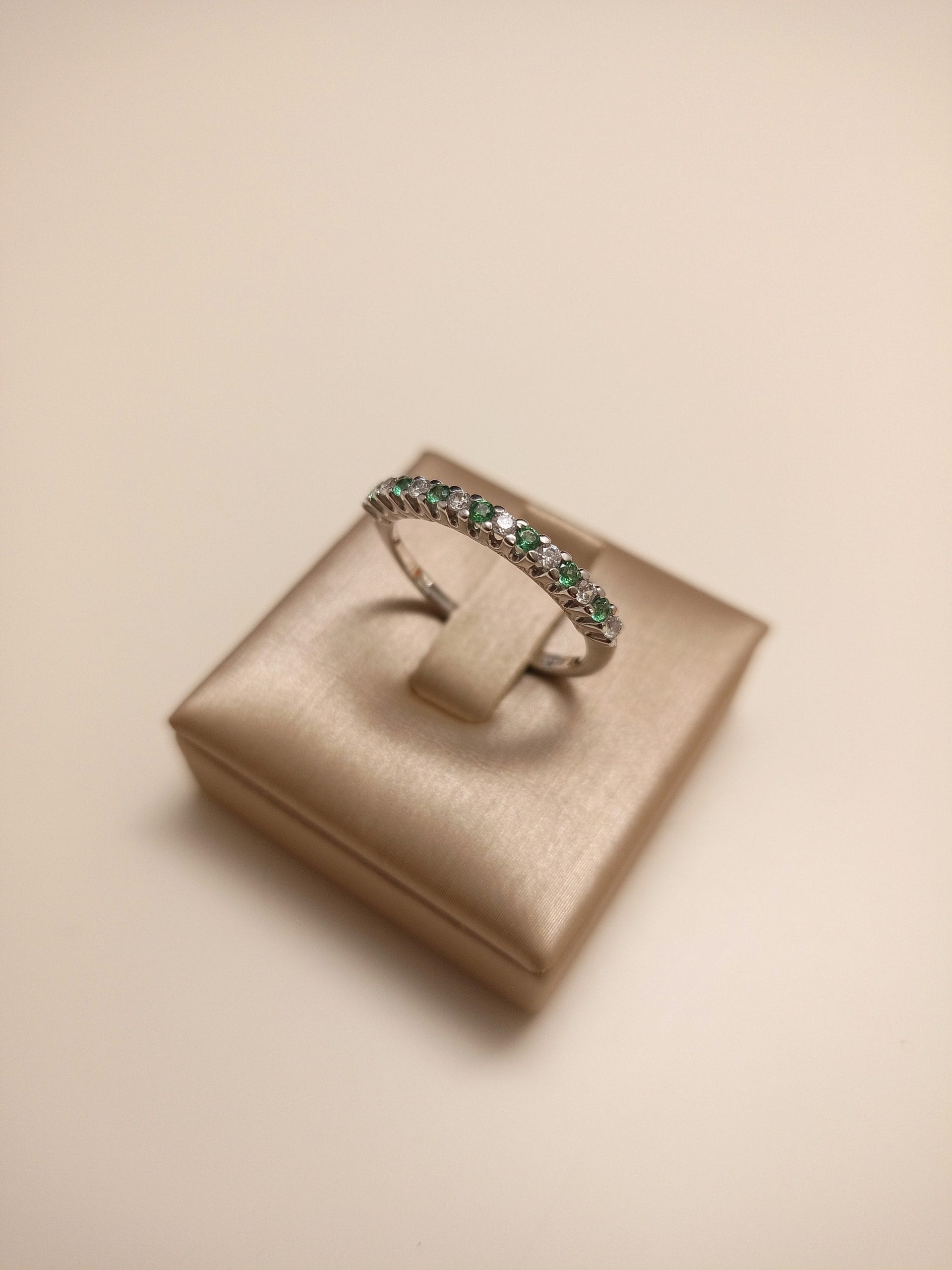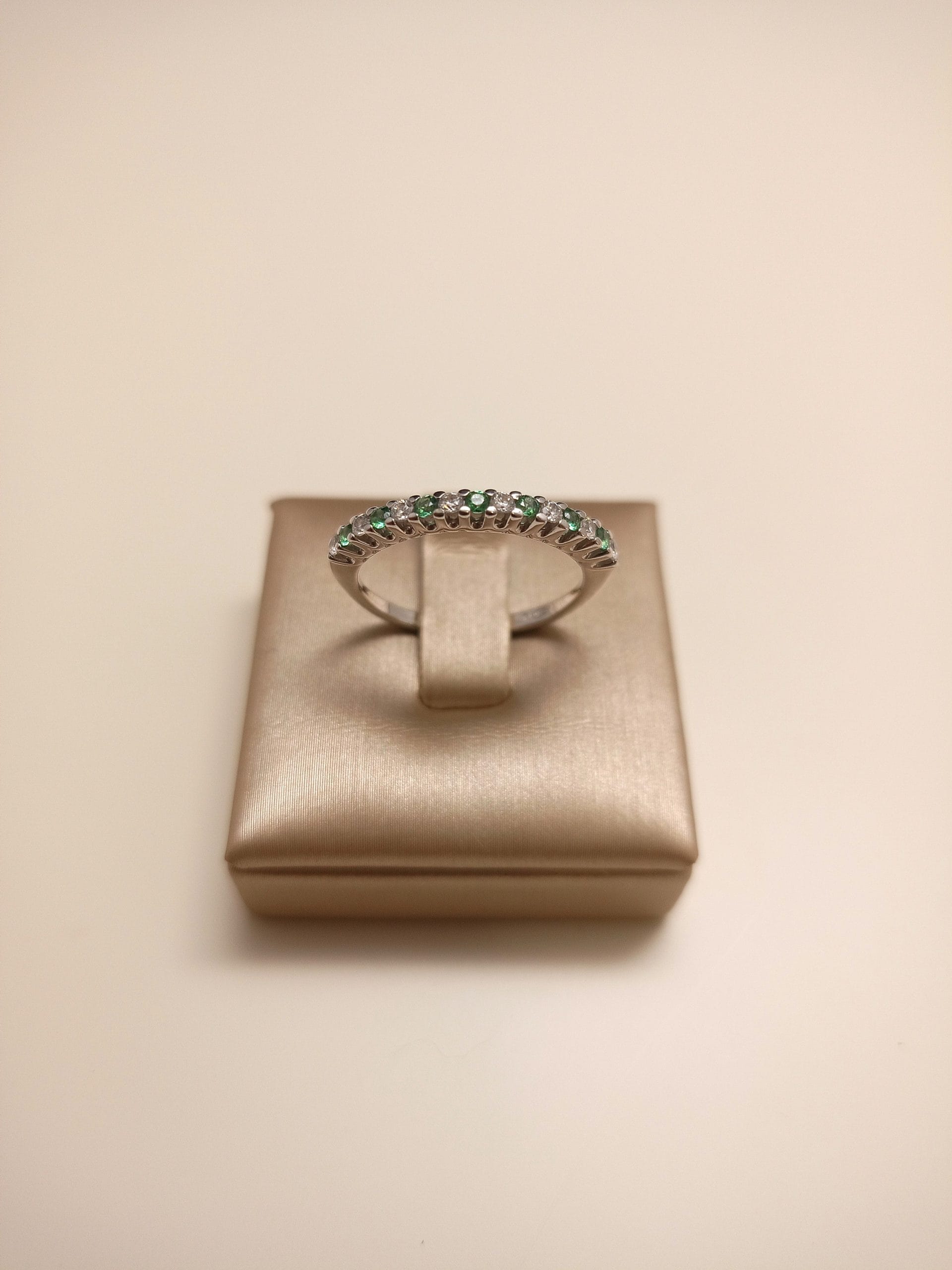 Anello Pietra Verde Da Donna In Oro Bianco 18Kt modello veretta con zirconi incastonati su gambo pieno. Peso dell’anello gr 1.70