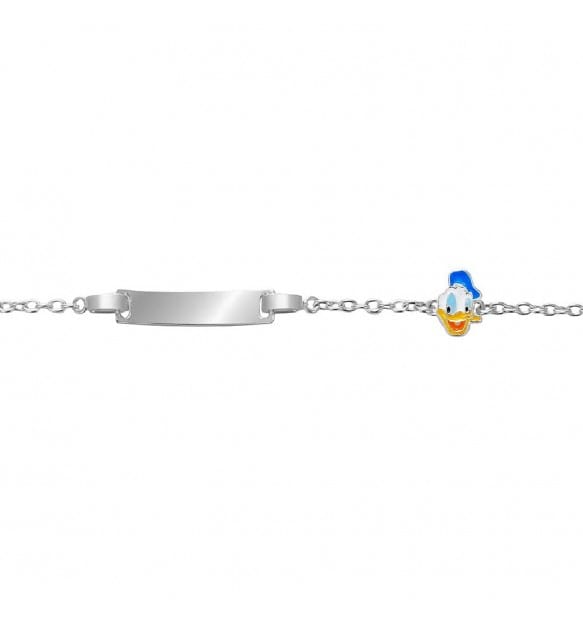 Braccialetto realizzato in argento 925%. Targa centrale incidibile ed elemento laterale a forma di Donald Duck con smalto.