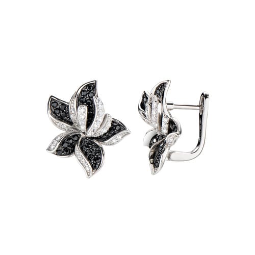 Orecchini in Argento 925 zirconi bianchi e neri – Rodio –